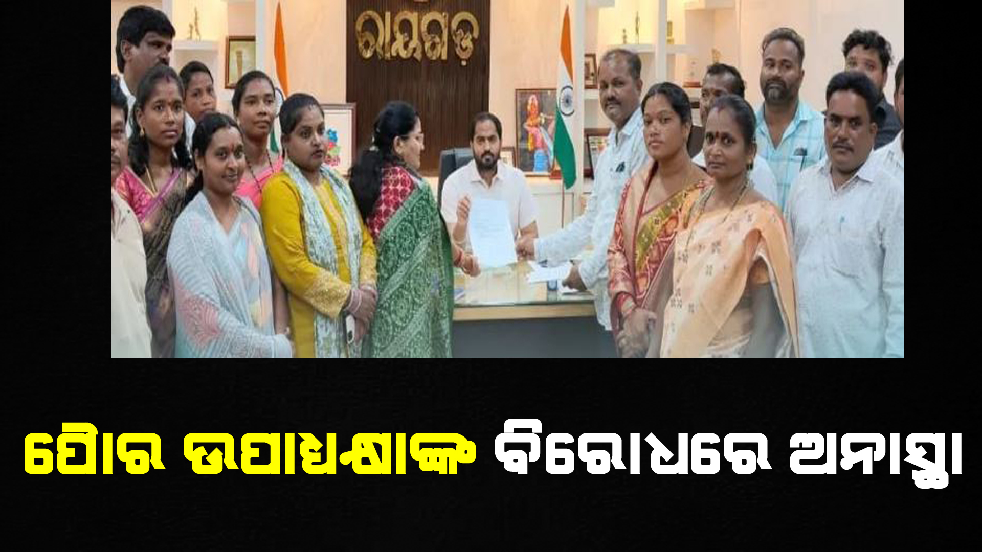 ରାୟଗଡା : ରାୟଗଡା ପୈାରପରିଷଦ ଉପାଧ୍ୟକ୍ଷାଙ୍କ ବିରୋଧରେ ଅନାସ୍ଥା । ପୈାର ଉପାଧ୍ୟକ୍ଷା ଶୁଭ୍ରାରାଣୀ ପଣ୍ଡାଙ୍କ ବିରୋଧରେ ଅନାସ୍ଥା ପ୍ରସ୍ତାବ । ଜିଲ୍ଲାପାଳଙ୍କ ନିକଟରେ ଫେରାଦ ହେଲେ ୨୪ ଜଣରୁ ୧୯ ଜଣ କାଉନସିଲର । ଅନାସ୍ଥା ଆଣିଥିବା ୧୯ ଜଣ କାଉନସିଲର ଏନ.ଭାସ୍କର ରାଓଙ୍କ ଗୋଷ୍ଠୀର ହୋଇଥିବା ସୂଚନା । ଏଠାରେ ସୂଚନାଯୋଗ୍ୟ ଯେ ପୂର୍ବତନ ରାଜ୍ୟସଭା ସାଂସଦ ଏନ ଭାସ୍କର ରାଓ କିଛି ଦିନ ତଳେ ବି ଜେ ଡିରୁ ଇସ୍ତଫା ଦେଇଥିଲେ । ଇସ୍ତଫା ଦେବା ପରେ ଶ୍ରୀ ରାଓଙ୍କ ସମର୍ଥିତ ନିର୍ବାଚିତ ପ୍ରତିନିଧିମାନେ ଏହି ପଦକ୍ଷେପ ନେଇଛନ୍ତି ।