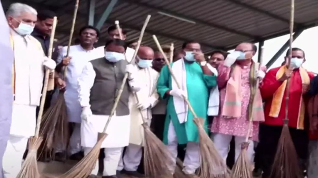 ଭୁବନେଶ୍ୱର :ସ୍ୱଚ୍ଛ ଭାରତ ଅଭିଯାନରେ ସାମିଲ ହେଲେ ମୁଖ୍ୟମନ୍ତ୍ରୀ ମୋହନ ଚରଣ ମାଝୀ । ପ୍ରଧାନମନ୍ତ୍ରୀ ମୋଦିଙ୍କ ଜନ୍ମ ଦିନ ଅବସରରେ ସ୍ୱଚ୍ଛ ଭାରତ ଅଭିଯାନ କାର୍ଯ୍ୟକ୍ରମ । ଭୁବନେଶ୍ୱର ମାଷ୍ଟରକ୍ୟାଣ୍ଟିନରେ ସ୍ୱଚ୍ଛ ଭାରତ ଅଭିଯାନ କାର୍ଯ୍ୟକ୍ରମ । ମାଷ୍ଟରକ୍ୟାଣ୍ଟିନ୍ ଛକଠାରେ ଆୟୋଜିତ ସ୍ବଚ୍ଛତା ଭାରତ ଅଭିଯାନରେ ମୁଖ୍ୟମନ୍ତ୍ରୀ ମୋହନ ଚରଣ ମାଝୀଙ୍କ ସହ ବିଜେପି ରାଜ୍ୟ ସଭାପତି ମନମୋହନ ସାମଲ ଓ ଓଡ଼ିଶା ବିଜେପି ପ୍ରଭାରୀ ବିଜୟ ସିଂ ତୋମାର୍ ପ୍ରମୁଖ ଅଂଶଗ୍ରହଣ କରିଥିଲେ। ଏଥିରେ ବିଧାୟକ ବାବୁ ସିଂହ, ଜଗନ୍ନାଥ ପ୍ରଧାନଙ୍କ କେତେକ ଅନ୍ୟ ବିଜେପି ନେତା ବି ସାମିଲ ହୋଇଥିଲେ।