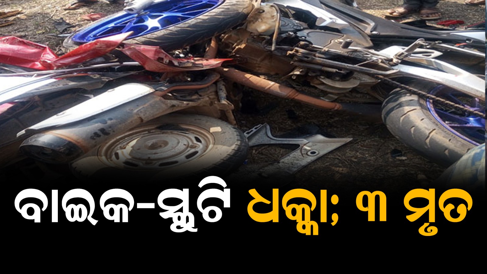 ବାରିପଦା : ବାଇକ-ସ୍କୁଟି ମୁହାଁମୁହିଁ ଧକ୍କାରେ ୩ ଯୁବକଙ୍କ ମୃତ୍ୟୁ । ଉଦଳା ରାସ୍ତା ବାଲିଯୋଡା ଛକରେ ମର୍ମନ୍ତୁଦ ଦୁର୍ଘଟଣା । ୩ ମୃତକ ସ୍ଥାନୀୟ ଅଞ୍ଚଳର ହୋଇଥିବା ସୂଚନା । ବାରିପଦା ପିଆରଏମ ମେଡିକାଲ କଲେଜ ଓ ହସ୍ପିଟାଲକୁ ଅଣାଯାଇଥିବା ବେଳେ ଡାକ୍ତର ମୃତ ଘୋଷଣା କରିଛନ୍ତି । ମୃତକଙ୍କ ପରିଚୟ ମିଳିପାରିନି ।