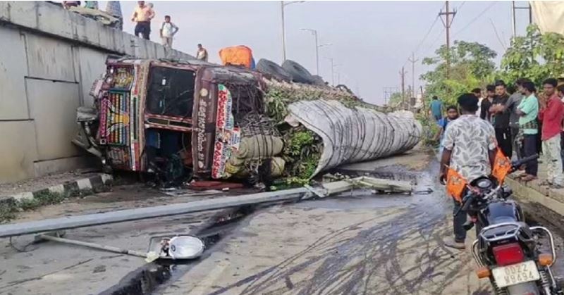 ବ୍ରିଜରୁ ତଳକୁ ଖସିଲା କଦଳୀ ବୋଝେଇ ଟ୍ରକ