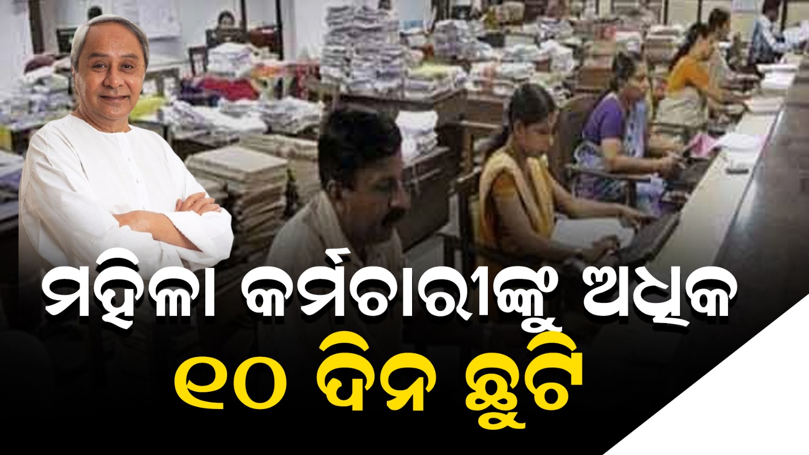 ଭୁବନେଶ୍ୱର : ମହିଳା ସରକାରୀ କର୍ମଚାରୀଙ୍କୁ ମିଳିବ ଅଧିକ ୧୦ ଦିନ ଛୁଟି । ବାର୍ଷିକ ୧୫ ଦିନ ଛୁଟି ପାଉଥିଲେ । ଏଣିକି ୨୫ ଦିନ ପାଇବେ । ଅତିରିକ୍ତ ଛୁଟି ଘୋଷଣା କଲେ ମୁଖ୍ୟମନ୍ତ୍ରୀ ନବୀନ ପଟ୍ଟନାୟକ । ମହିଳାମାନଙ୍କ ପାରିବାରିକ ଦାୟିତ୍ୱ ଓ ବିଭିନ୍ନ ସମସ୍ୟକୁ ଆଖି ଆଗରେ ରଖି ମୁଖ୍ୟମନ୍ତ୍ରୀ ଏହି ନିଷ୍ପତ୍ତି ଗ୍ରହଣ କରିଛନ୍ତି। ସୂଚନାଯୋଗ୍ୟ ଯେ ୯୦ ଦଶକରେ ମହିଳାମାନଙ୍କ ପାଇଁ ସରକାରୀ ଚାକିରିରେ ୩୩% ସ୍ଥାନ ସଂରକ୍ଷଣ ଭଳି ଯୁଗାନ୍ତକାରୀ ପଦକ୍ଷେପ ଗ୍ରହଣ କରିବାରେ ଓଡିଶା ଥିଲା ଦେଶର ପ୍ରଥମ ରାଜ୍ୟ।