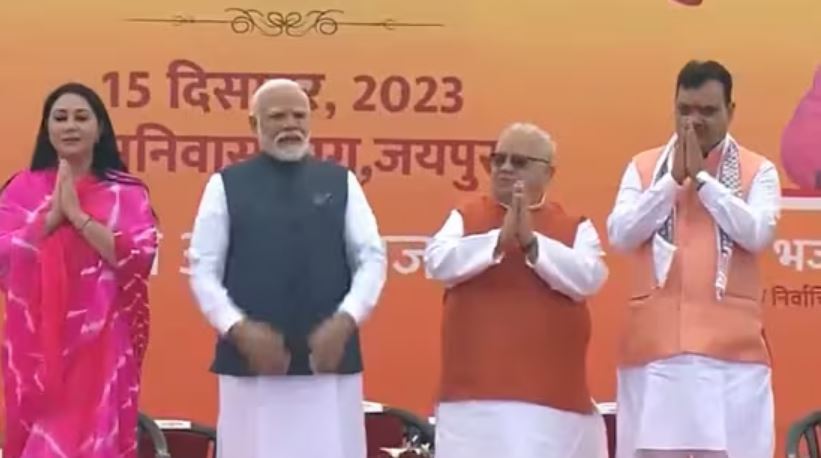 ଜୟପୁର : ରାଜସ୍ଥାନ ମୁଖ୍ୟମନ୍ତ୍ରୀ ଭାବେ ଭଜନଲାଲ ଶର୍ମାଙ୍କ ଶପଥ ଗ୍ରହଣ । ଶପଥ ପାଠ କରାଇଲେ ରାଜ୍ୟପାଳ କଲରାଜ ମିଶ୍ର । ଦୀୟା କୁମାରୀ ଓ ପ୍ରେମ ଚାନ୍ଦ ବୈରୱା ଉପମୁଖ୍ୟମନ୍ତ୍ରୀ ଭାବେ ନେଲେ ଶପଥ । ପ୍ରଧାନମନ୍ତ୍ରୀଙ୍କ ମୋଦିଙ୍କ ସମେତ ବିଜେପିର ବରିଷ୍ଠ ନେତା ମଧ୍ୟ ଶପଥଗ୍ରହଣ ଉତ୍ସବରେ ସାମିଲ ହୋଇଛନ୍ତି । ଗୃହମନ୍ତ୍ରୀ ଅମିତ ଶାହ, ବିଜେପି ସଭାପତି ଜେ.ପି ନଡ୍ଡା, ବିଜେପି ଶାସିତ ରାଜ୍ୟର ମୁଖ୍ୟମନ୍ତ୍ରୀ ଓ ଅନେକ କେନ୍ଦ୍ରମନ୍ତ୍ରୀ ମଧ୍ୟ ଏହି ଶପଥଗ୍ରହଣ ଉତ୍ସବରେ ସାମିଲ ହୋଇଛନ୍ତି । ସବୁଠୁ ବଡ କଥା ହେଲା, ଆଜି ଭଜନଲାଲଙ୍କର ଜନ୍ମଦିନ । ନିଜ ଜନ୍ମଦିନରେ ମୁଖ୍ୟମନ୍ତ୍ରୀ ଭାବେ ଶପଥ ନେଇଛନ୍ତି ଭଜନଲାଲ । ରାଜସ୍ଥାନରେ ଭଜନଲାଲଙ୍କୁ ମୁଖ୍ୟମନ୍ତ୍ରୀ କରିବା ସମସ୍ତଙ୍କୁ ଚକତି କରିଥିଲା । କାରଣ ରେସରେ ବସୁନ୍ଧରା ରାଜେ ଥିଲେ ମଧ୍ୟ ତାଙ୍କୁ ପଛରେ ପକାଇ ପ୍ରଥମଥର ବିଧାୟକ ହୋଇଥିବା ଭଜନଲାଲଙ୍କ ଉପରେ ଭରସା କରିଥିଲେ ବିଜେପିର ଶୀର୍ଷ ନେତୃତ୍ୱ ।