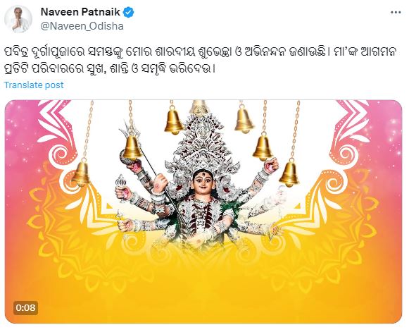 ଭୁବନେଶ୍ବର: ଆଜି ମଣ୍ଡପରେ ମା’ଙ୍କ ଅଷ୍ଟମୀ ପୂଜା ଚାଲିଥିବା ବେଳେ ପୀଠରେ ନବମୀ ପୂଜା କରାଯାଉଛି । ଏ ନେଇ ଶାରଦୀୟ ଦୁର୍ଗାପୂଜା ଅବସରରେ ରାଜ୍ୟବାସୀଙ୍କୁ ଶୁଭେଚ୍ଛା ଜଣାଇଛନ୍ତି ମୁଖ୍ୟମନ୍ତ୍ରୀ ନବୀନ ପଟ୍ଟନାୟକ । ମା’ଙ୍କ ନିକଟରେ ରାଜ୍ୟବାସୀଙ୍କ ସୁଖ, ଶାନ୍ତି ଓ ସମୃଦ୍ଧି କାମନା କରିଛନ୍ତି । ପାର୍ବଣର ଅମୃତ ଲଗ୍ନରେ ମା’ଙ୍କ ଆଶୀର୍ବାଦ ସମସ୍ତଙ୍କ ଜୀବନରେ ଶାନ୍ତି ଓ ଆନନ୍ଦ ଭରି ଦେଉ ବୋଲି ପ୍ରାର୍ଥନା କରୁଛି କହିଛନ୍ତି ମୁଖ୍ୟମନ୍ତ୍ରୀ । ଦୁର୍ଗାପୂଜାକୁ ନେଇ ସାରା ରାଜ୍ୟରେ ଏକ ପ୍ରକାର ଭକ୍ତିମୟ ପରିବେଶ ସୃଷ୍ଟି ହୋଇଛି । ଗାଁଠୁ ସହର ସବୁଠି ପୂଜାକୁ ନେଇ ଉତ୍ସାହର ମାହୋଲ ।