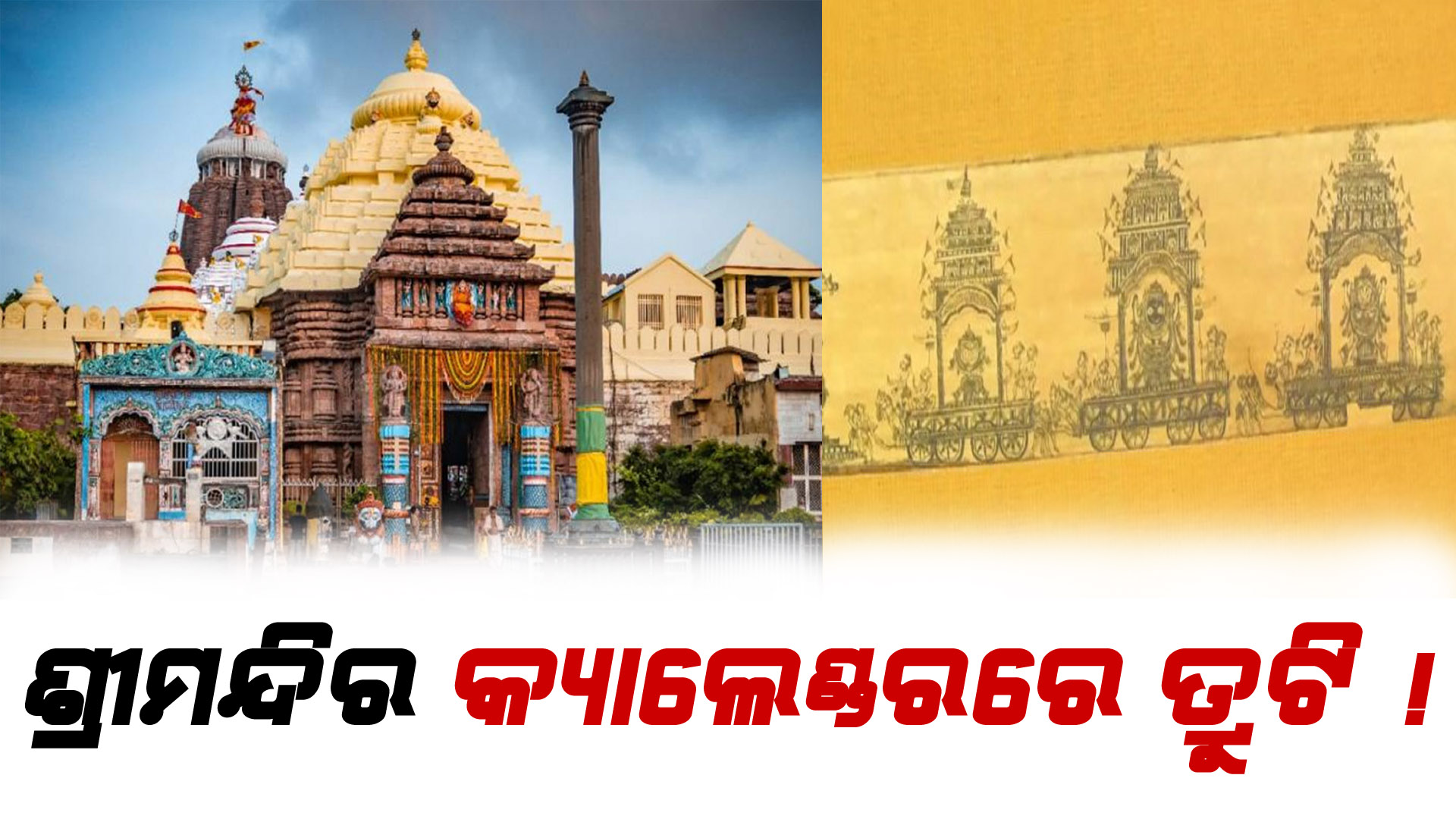 ପୁରୀ : ଶ୍ରୀ ଜଗନ୍ନାଥ ମନ୍ଦିର କ୍ୟାଲେଣ୍ଡରରେ ଗୁରୁତର ତ୍ରୁଟି ଅଭିଯୋଗ । ଜଗା ସ୍ଥାନରେ ବଳିଆ ଏ ବଳିଆ ଜାଗାରେ ଜଗାକୁ ନେଇ ଅସନ୍ତୋଷ । ଟେବୁଲ କ୍ୟାଲେଣ୍ଡର ଓ ଫଟୋ କ୍ୟାଲେଣ୍ଡରରେ ରହିଛି ସମାନ ଚିତ୍ର । ଶ୍ରୀ ଜଗନ୍ନାଥ ମନ୍ଦିର ପ୍ରଶାସନ ପକ୍ଷରୁ କ୍ୟାଲେଣ୍ଡର ଛପା ଯାଇଛି । ପଟଚ୍ଚିତ୍ର ଅଙ୍କା ଯାଇଥିବା ଚିତ୍ରକୁ ନେଇ ପ୍ରଶ୍ନ ଉଠାଇଲେ ବୁଦ୍ଧିଜୀବୀ । ମହାପ୍ରଭୁଙ୍କ ବିଶ୍ୱ ପ୍ରସିଦ୍ଧ ରଥ ଯାତ୍ରା ସମୟର ଫଟୋରେ ମଧ୍ୟ ତ୍ରୁଟି । ପ୍ରଥମେ ଦେବୀ ସୁଭଦ୍ରା, ପରେ ଶ୍ରୀ ଜଗନ୍ନାଥ ଓ ଶେଷରେ ଶ୍ରୀବଳଭଦ୍ରଙ୍କ ରଥ ଟଣା । ତେବେ ଶ୍ରୀମନ୍ଦିର ପ୍ରଶାସନ ପକ୍ଷରୁ ପ୍ରକାଶିତ ୨୦୨୬ କ୍ୟାଲେଣ୍ଡରରେ ଏଭଳି ତ୍ରୁଟି କୁ ଜଗନ୍ନାଥ ପ୍ରେମୀ ଓ ଶ୍ରୀମନ୍ଦିର ସେବାୟତ ସମାଲୋଚନା କରିଛନ୍ତି ।