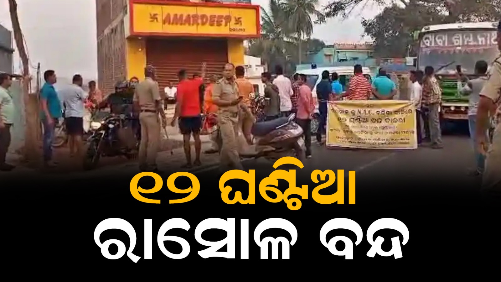ଢେଙ୍କାନାଳ : ରାସୋଳକୁ ଏନଏସି ମାନ୍ୟତା ଦାବି । ରାସୋଳ ବିକାଶ ପରିଷଦ ପକ୍ଷରୁ ୧୨ ଘଣ୍ଟିଆ ବନ୍ଦ ପାଳନ । ସକାଳ ୬ଟାରୁ ସନ୍ଧ୍ୟା ୬ଟା ପର୍ଯ୍ୟନ୍ତ ୧୨ ଘଣ୍ଟିଆ ବନ୍ଦ ପାଳନ । ପ୍ରଭାବରେ ଗାଡି ଚଳାଚଳ ଠପ, ଦୋକାନବଜାର ବନ୍ଦ ।