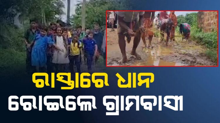 ରାସ୍ତାରେ ଧାନ ରୋଇଲେ ଗ୍ରାମବାସୀ
